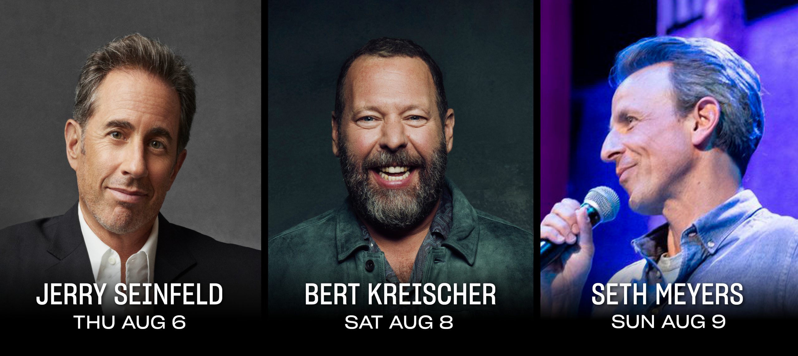 Jerry Seinfeld will headline on Thursday, August 6; Bert Kreischer will take the stage on Saturday, August 8; and Seth Meyers will perform on Sunday, August 9. A mainstage Stand-Up Showcase on Friday, August 7, and showcases throughout the festival will feature a lineup of talent from across the country.